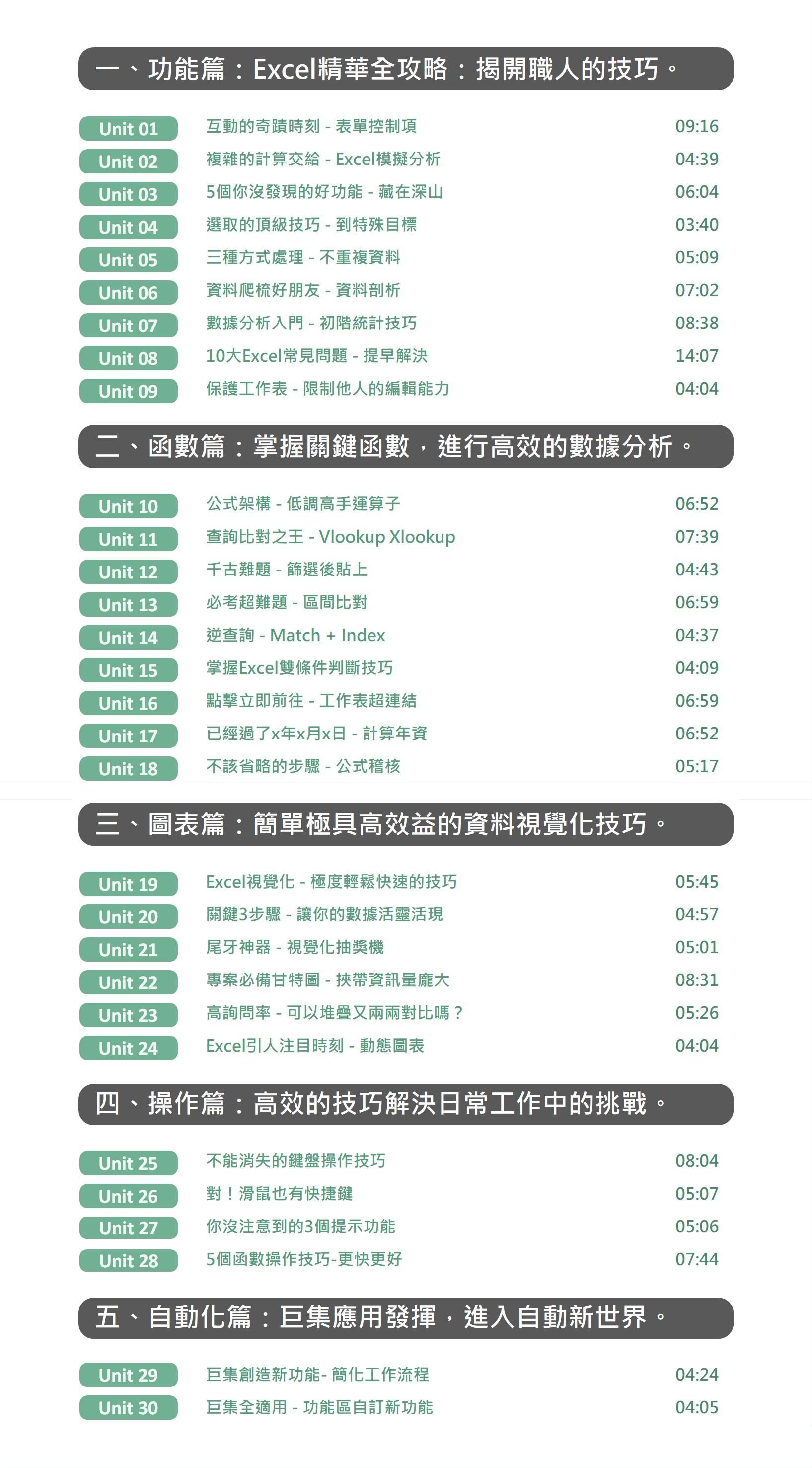 每一個單元都有立即練習檔,這是高度濃縮,即戰力課程。 這是面對潛在問題,高價值的課程