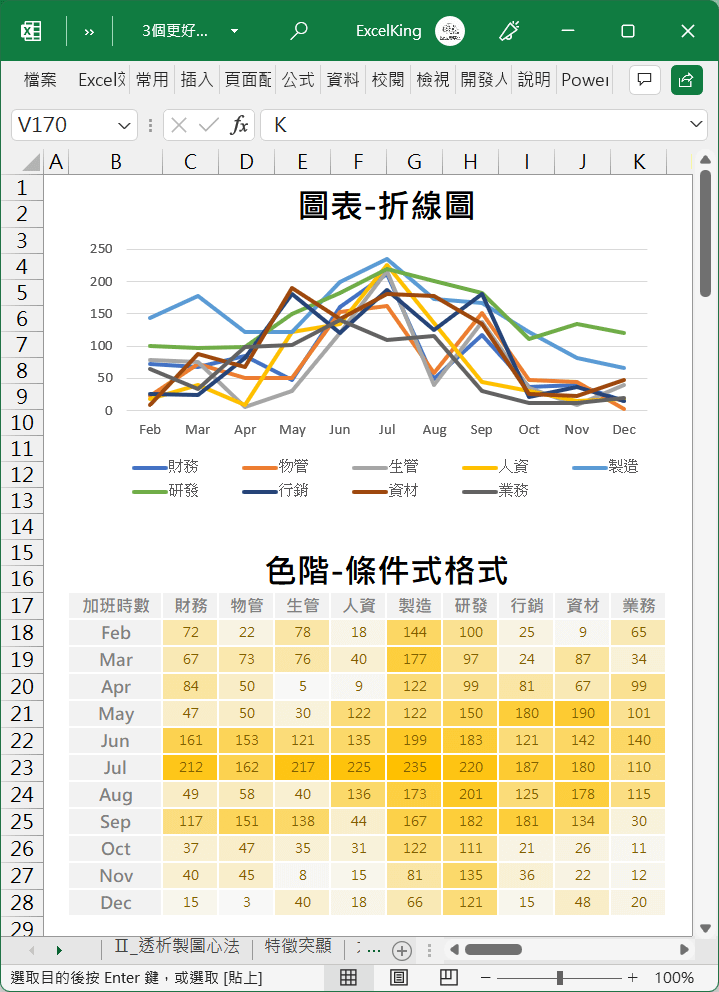 多筆數據呈現與其折線圖,不如直接用色階吧!(條件式格式)