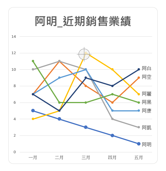 資料一複雜,老闆腦就弱,老闆一腦弱,萬事就放過,大前輩邊說邊畫出超級折線圖