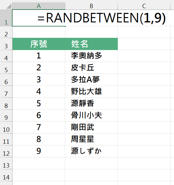 =RANDBETWEEN(1,總人數)